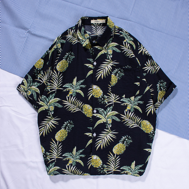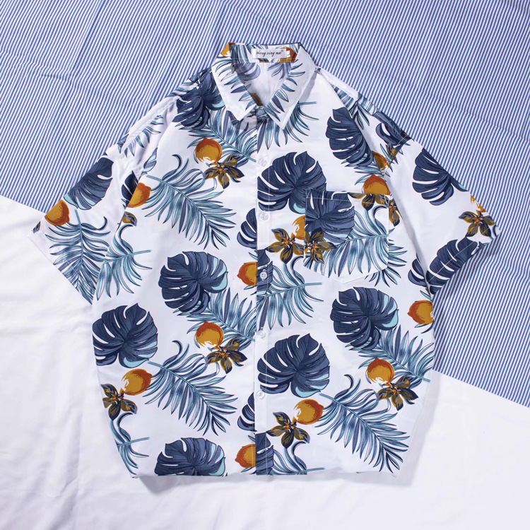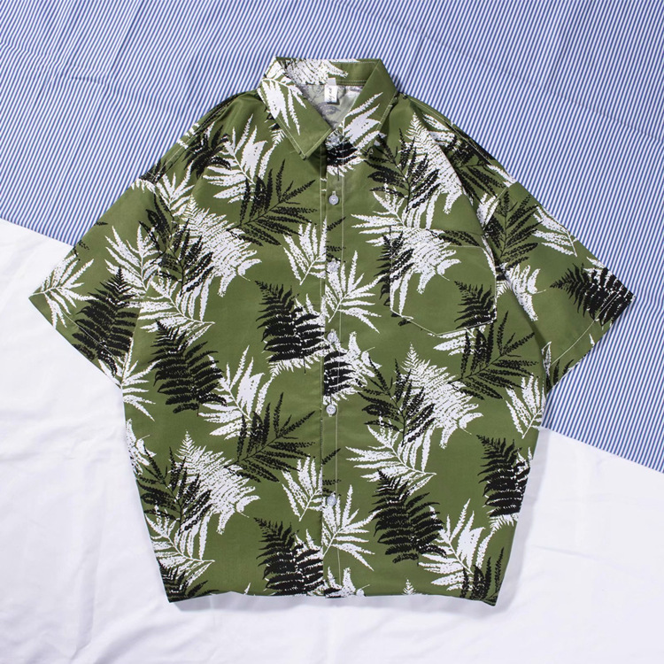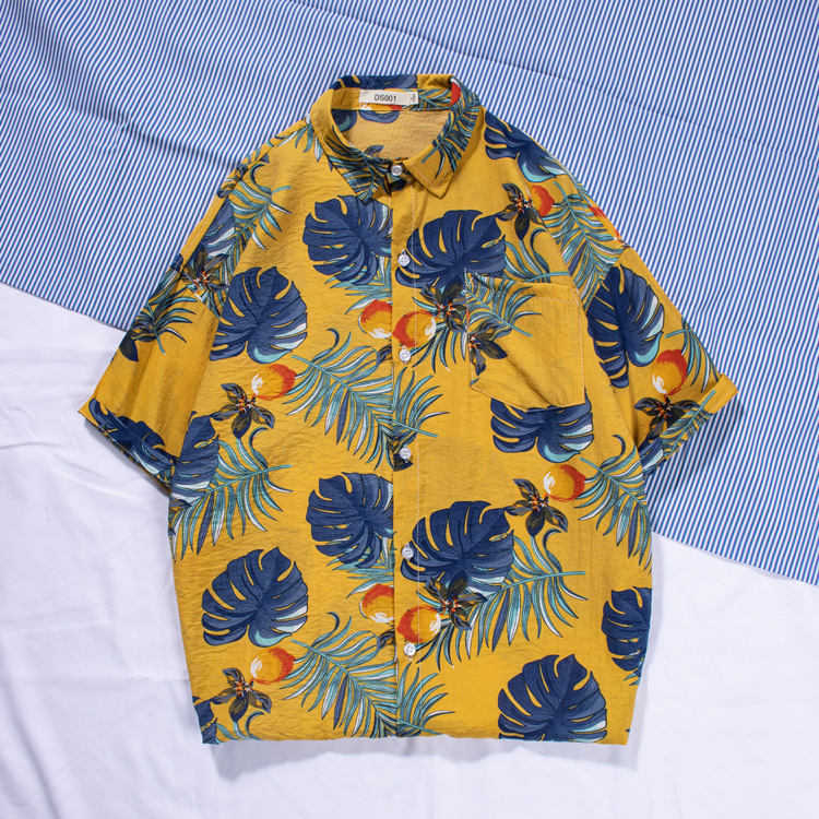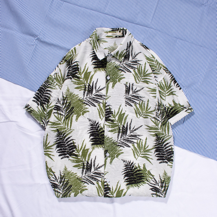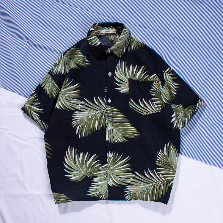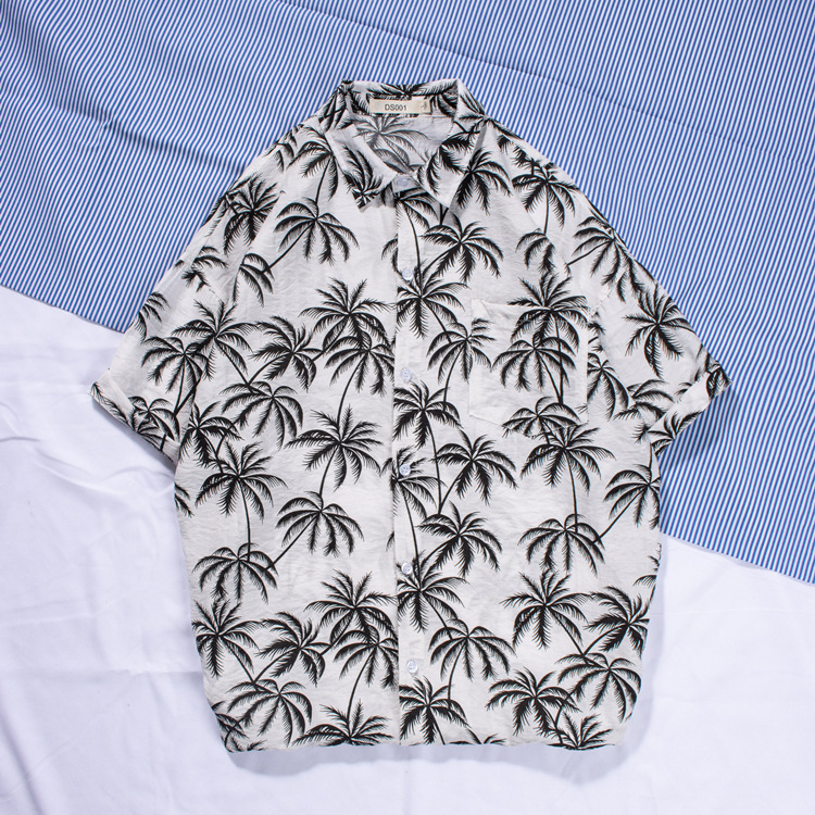 新款男士沙灘襯衫衝浪椰樹短袖花襯衫棉麻海邊夏威夷寬鬆印花襯衣