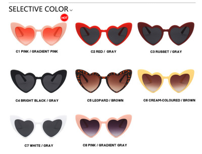 2023跨境愛心墨鏡防曬桃心眼鏡UV400閃粉水晶太陽鏡SUNGLASSES