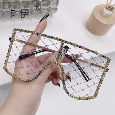 DIY Mesh Personalized Trendy Glasses—European and American Style Women's Party & Ball Diamond-Encrusted Sunglasses—Live Streaming Decorative Eyeglasses