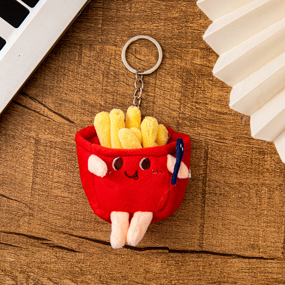 可愛創意薯條漢堡公仔掛件背包情侶款毛絨掛飾鑰匙扣包包掛件批發