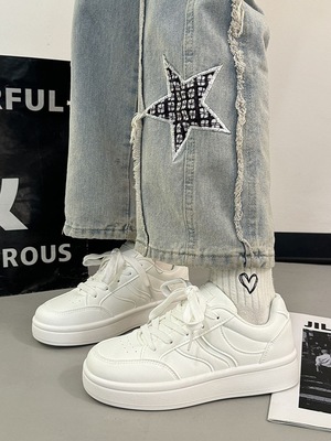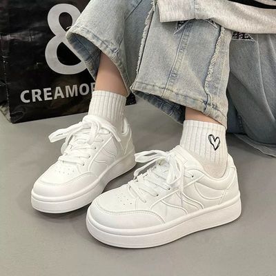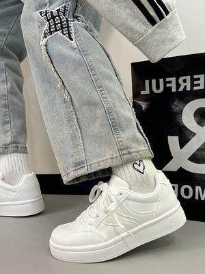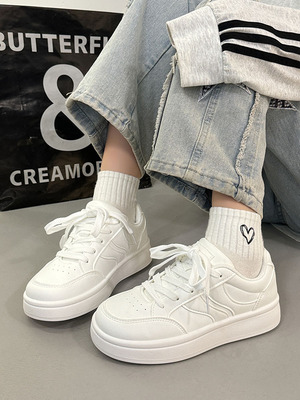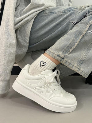 Thick-soled women's white shoes with height increase, 2025 new spring and autumn shoes, trendy and versatile, minority sporty sneaker