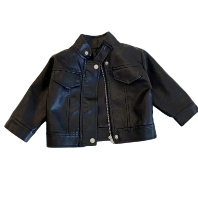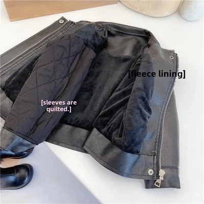 Winter plus velvet leather jacket for girls and boys handsome casual motorcycle leather jacket for children and fashionable fashionable zipper jacket for children