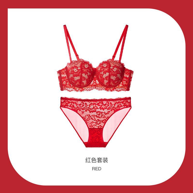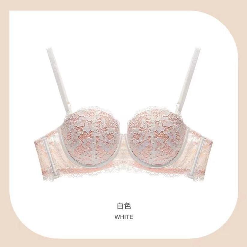 法式性感蕾絲防下垂有鋼圈半杯內衣女小胸聚攏上托塑形百搭文胸罩