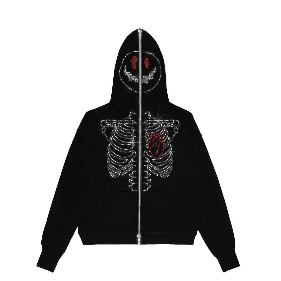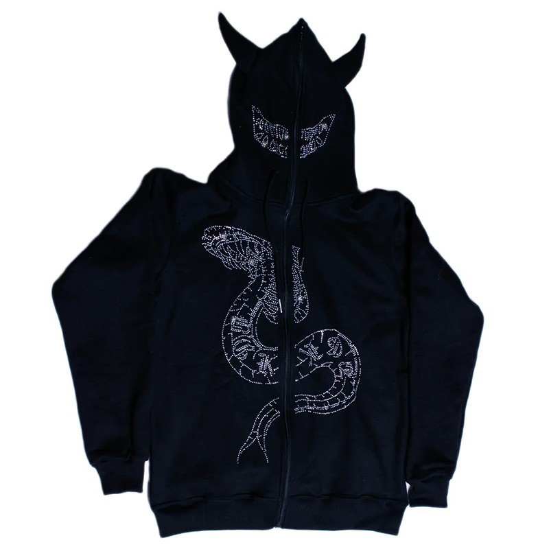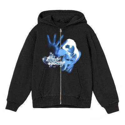 歐美亞馬遜跨境批發印花燙鑽連帽開衫拉鏈寬鬆男女潮牌衛衣外套fn