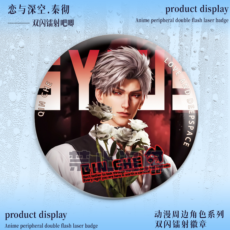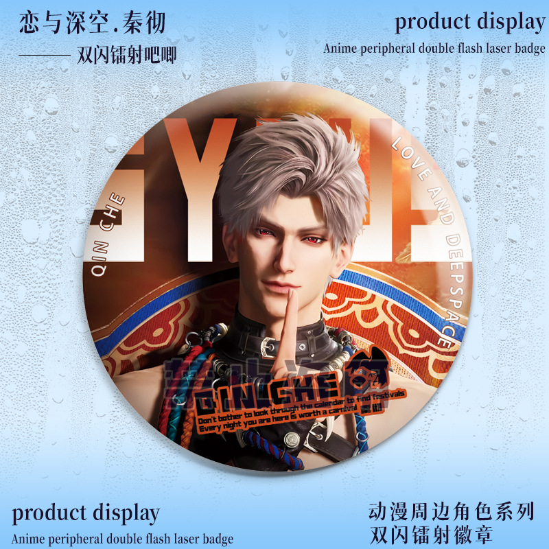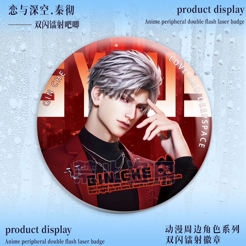 Love and Deep Space Qin Che Double Flash Barbecue Girl Around the Pretty Laser Badge Tin 75 Grain Lapel Pin
