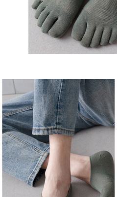五指襪子男夏季薄款棉襪吸汗分趾襪淺口隱形防滑男士網眼船襪批發