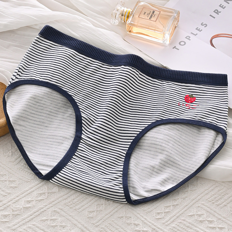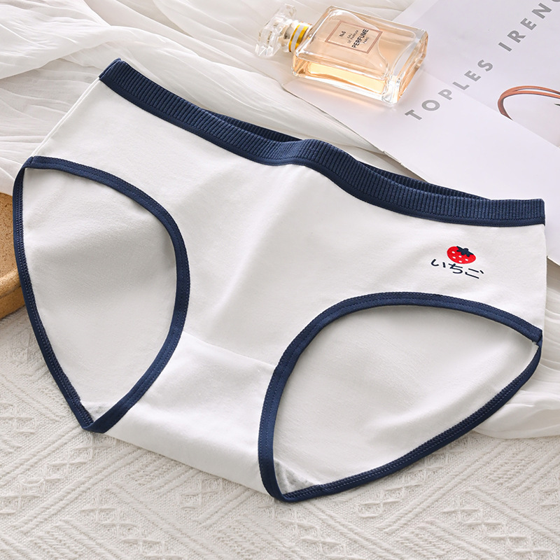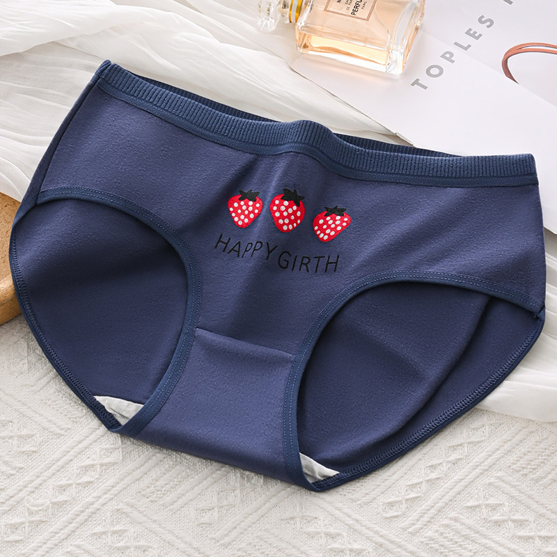 日系草莓印花內褲女中腰大碼透氣可愛系學生高中少女卡通三角短褲