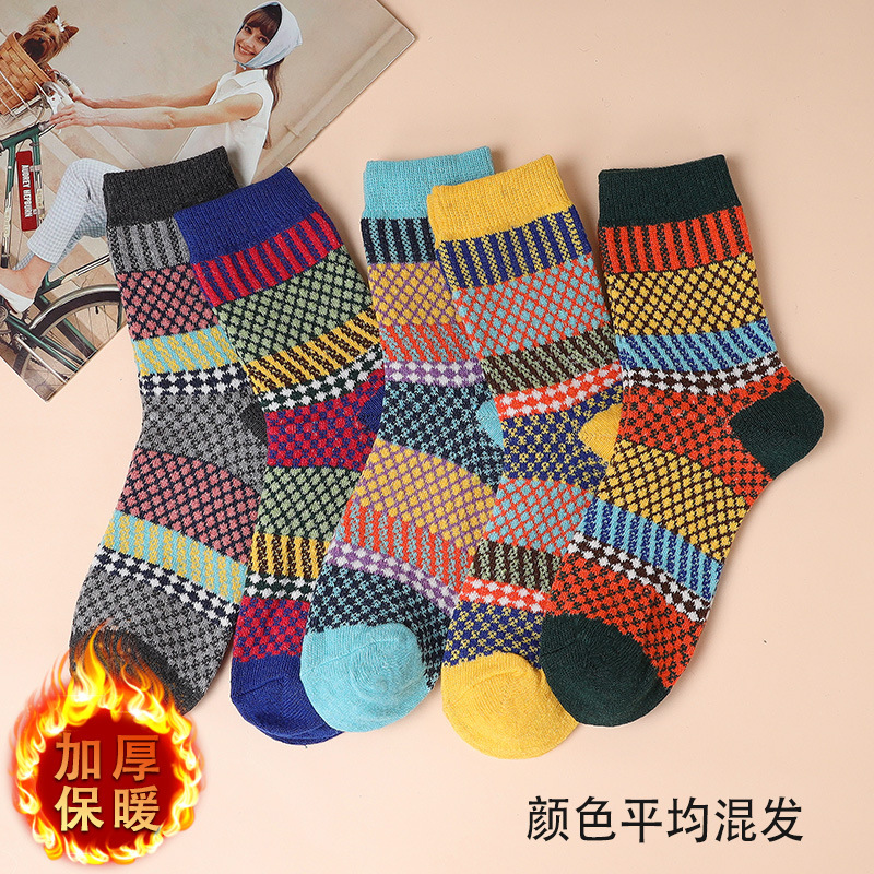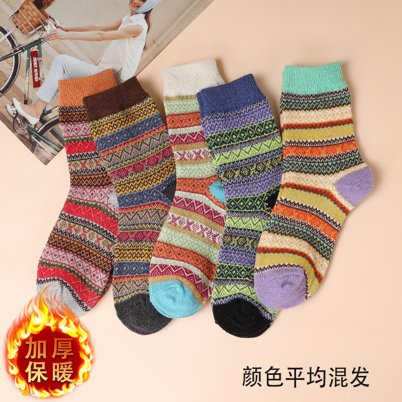 秋冬季個性中筒女襪復古民族風棉質加厚長筒襪冬季保暖中老年棉襪