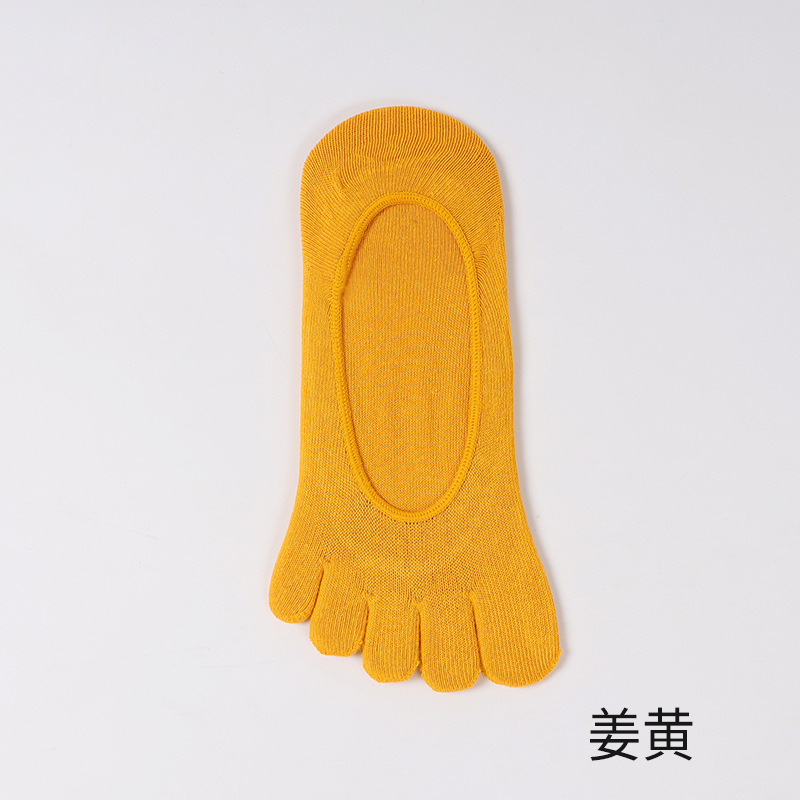 Summer New Invisible Five-Finger Socks for Women, Crew Socks, Solid Color Cotton Socks, Silicone Non-Slip, Low-Cut Socks, Toe-Split Socks