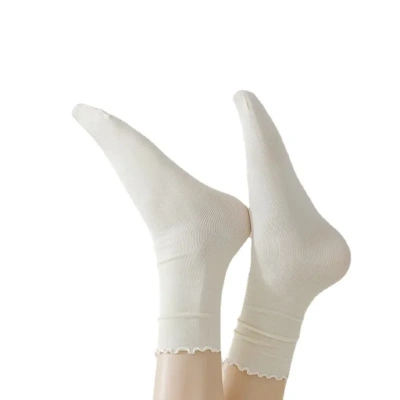 木耳邊冰冰襪--【奶白】