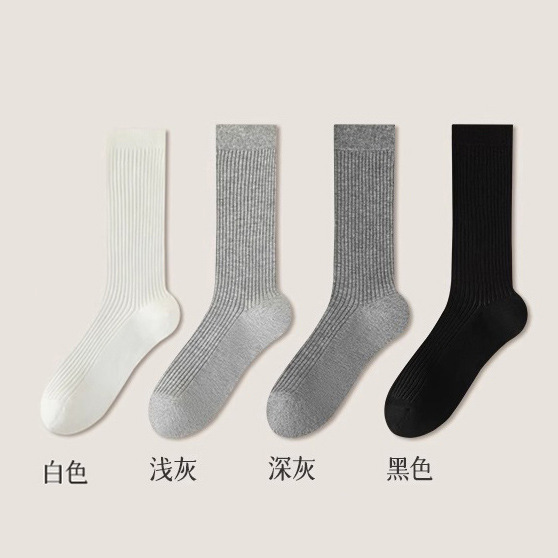 灰色堆堆襪子女夏季薄款中筒搭配老爹鞋純棉miu系芭蕾風白色長襪