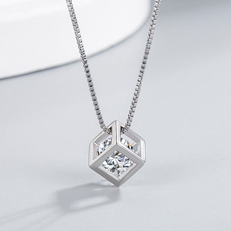 愛情魔方吊墜女鑲鑽鋯石四方形愛情窗鎖骨鏈女廠家貨源批發