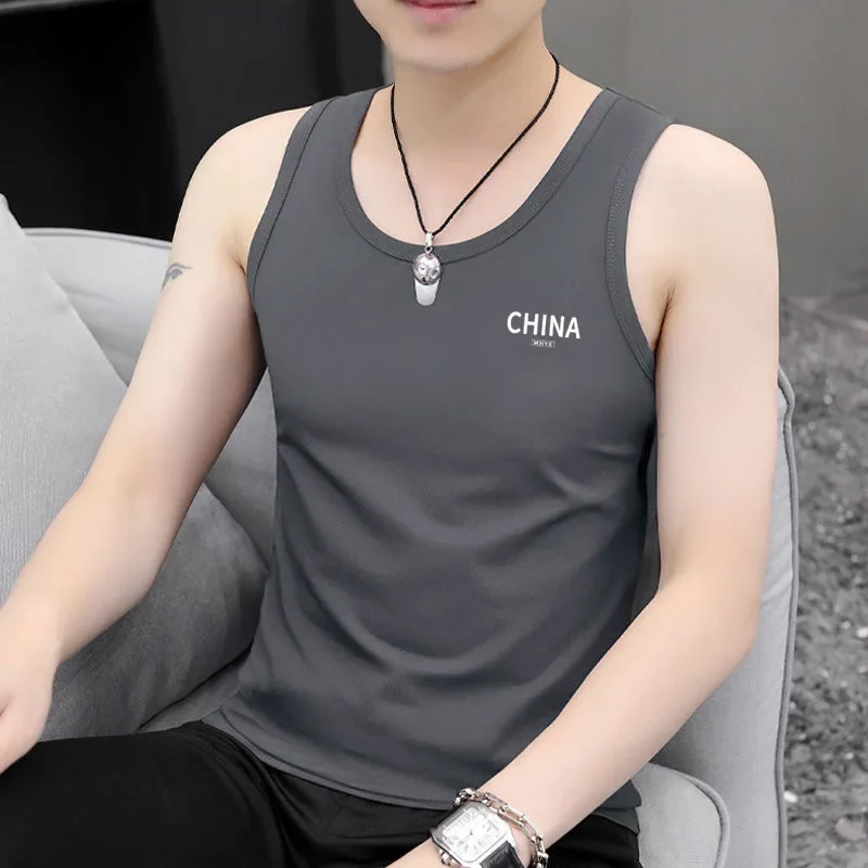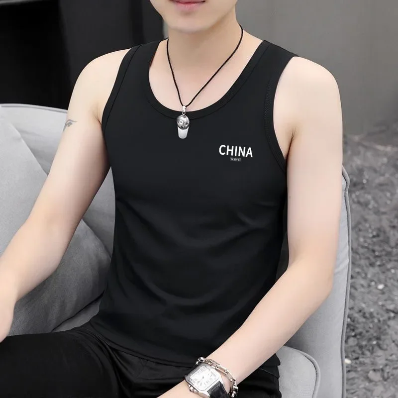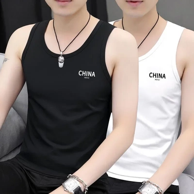 國潮字母印花男士背心套頭顯瘦圓領修身背心運動汗衫潮流百搭馬甲