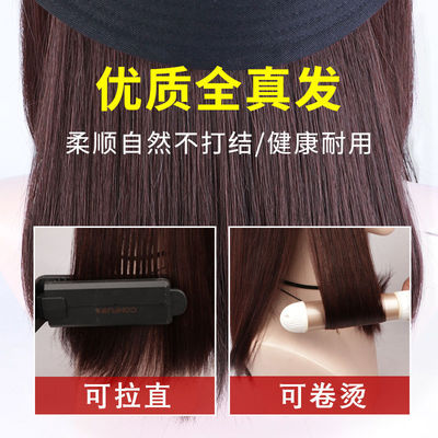 Headwear Integrated Wig for Women, Long Hair Style Fashion Human Hair Bob Cut Internet Celebrity Full Head Wig Fisherman Hat Short Hair Natural