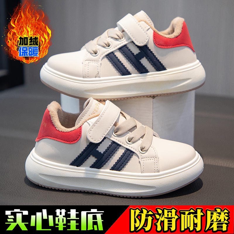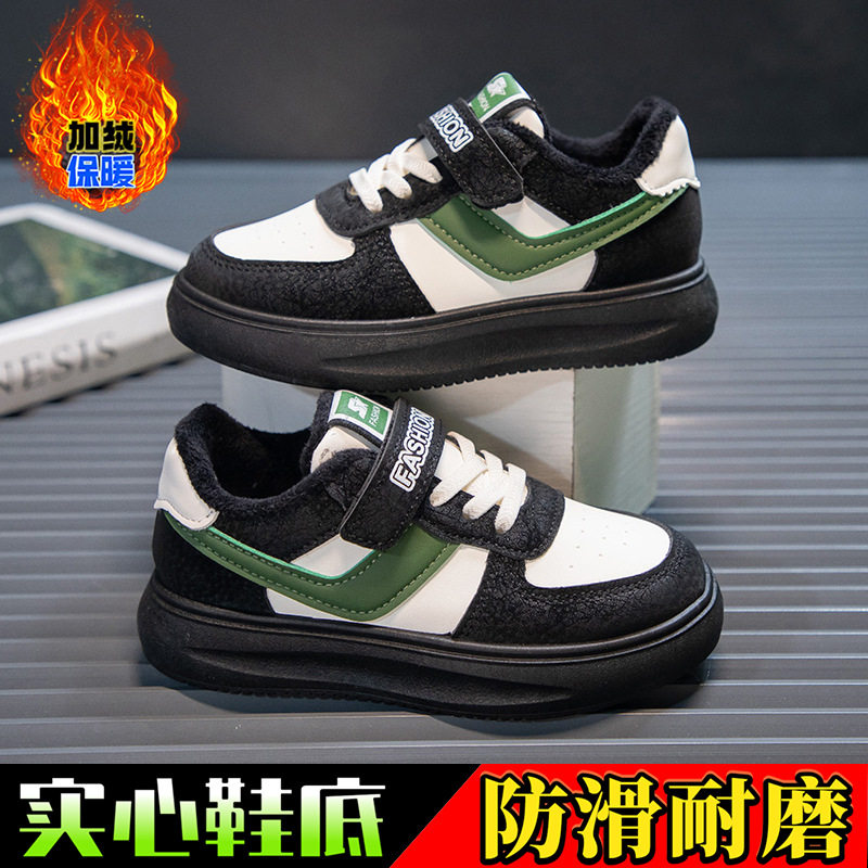 男童板鞋冬季2024新款兒童二棉鞋加絨保暖休閒鞋中大童男孩運動鞋