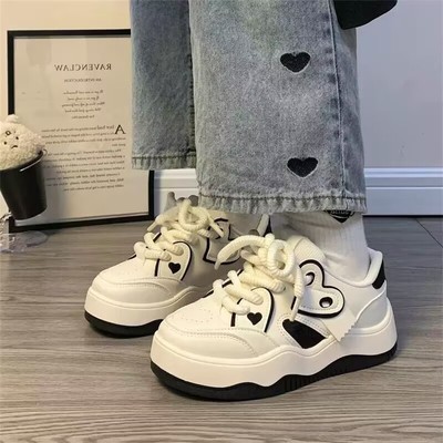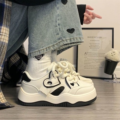 Women's White Sneakers 2025 New Style, Versatile Thick-Heeled Sneakers with INS Trendy and Unique Casual Platform Design