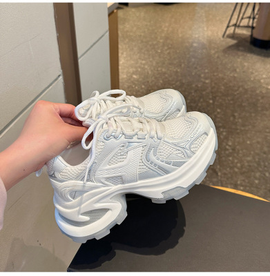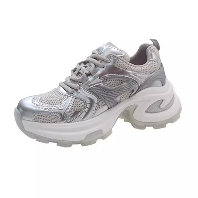 Silver Chunky-Soled Height-Increasing Dad Shoes for Women, 2025 Spring New Arrival, Mesh-Fabric Breathable All-Match Casual Height-Increasing Sports Shoes