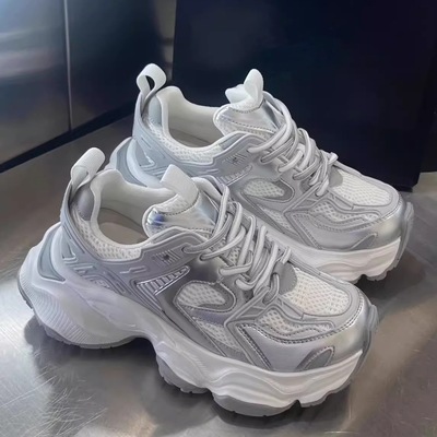 Platform elevated dad shoes for women, Ins-style trendy, 2025 spring and autumn new model, mesh surface breathable casual sports shoes