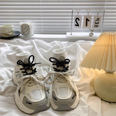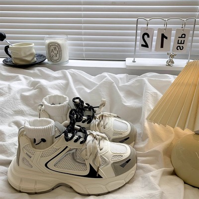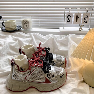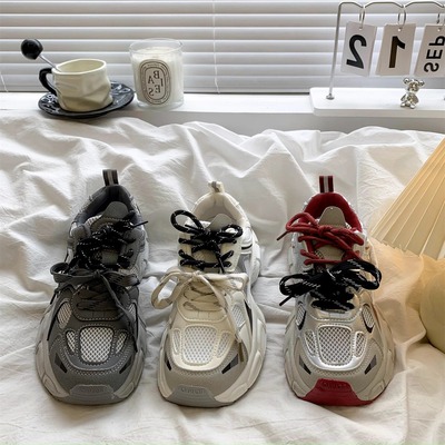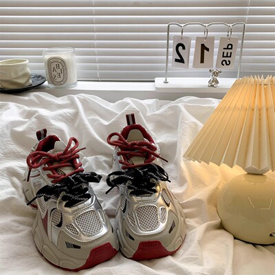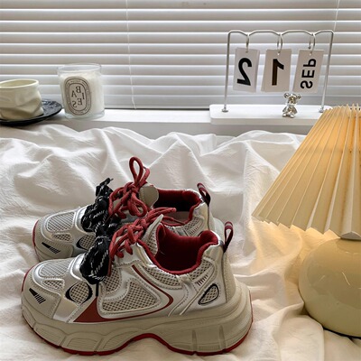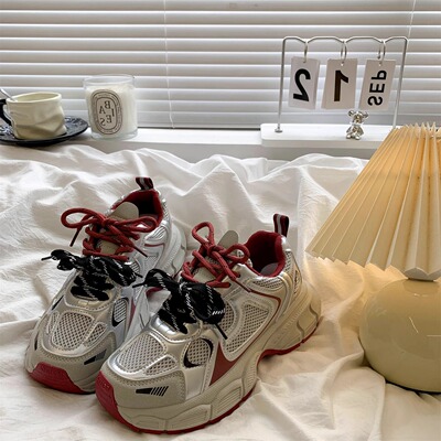復古安可拉紅老爹鞋女2025秋季新款百搭顯腳小厚底休閒運動鞋
