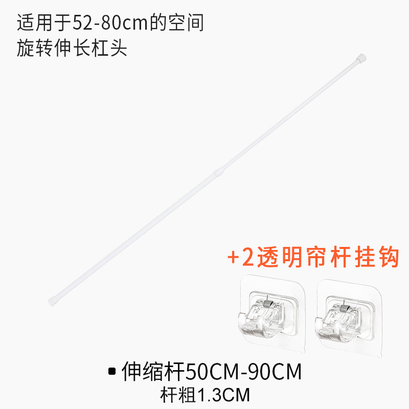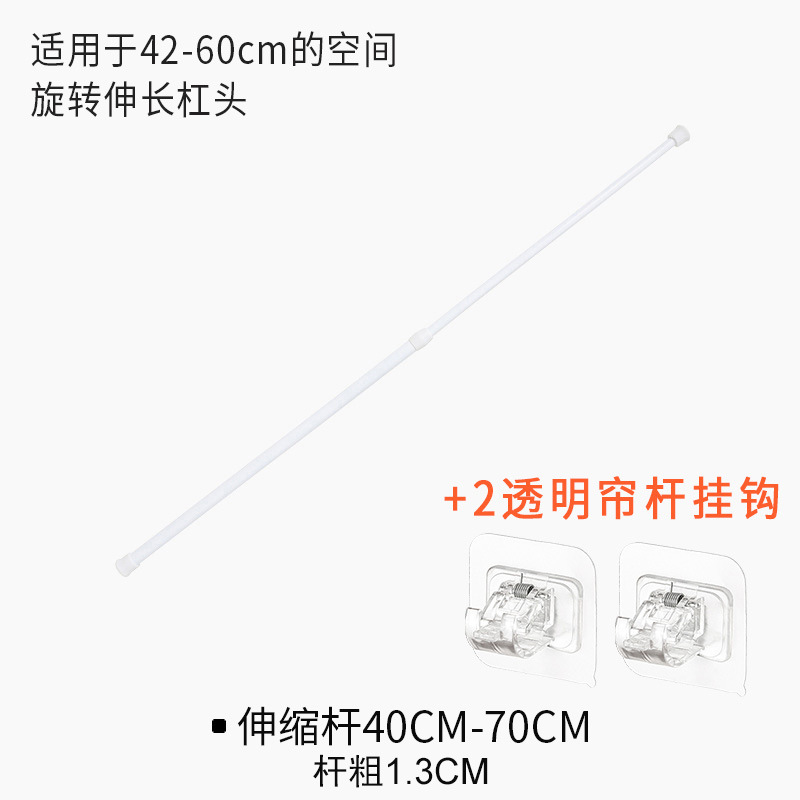 Extend the telescopic rod by 60-110cm + 2 transparent curtain rod hooks