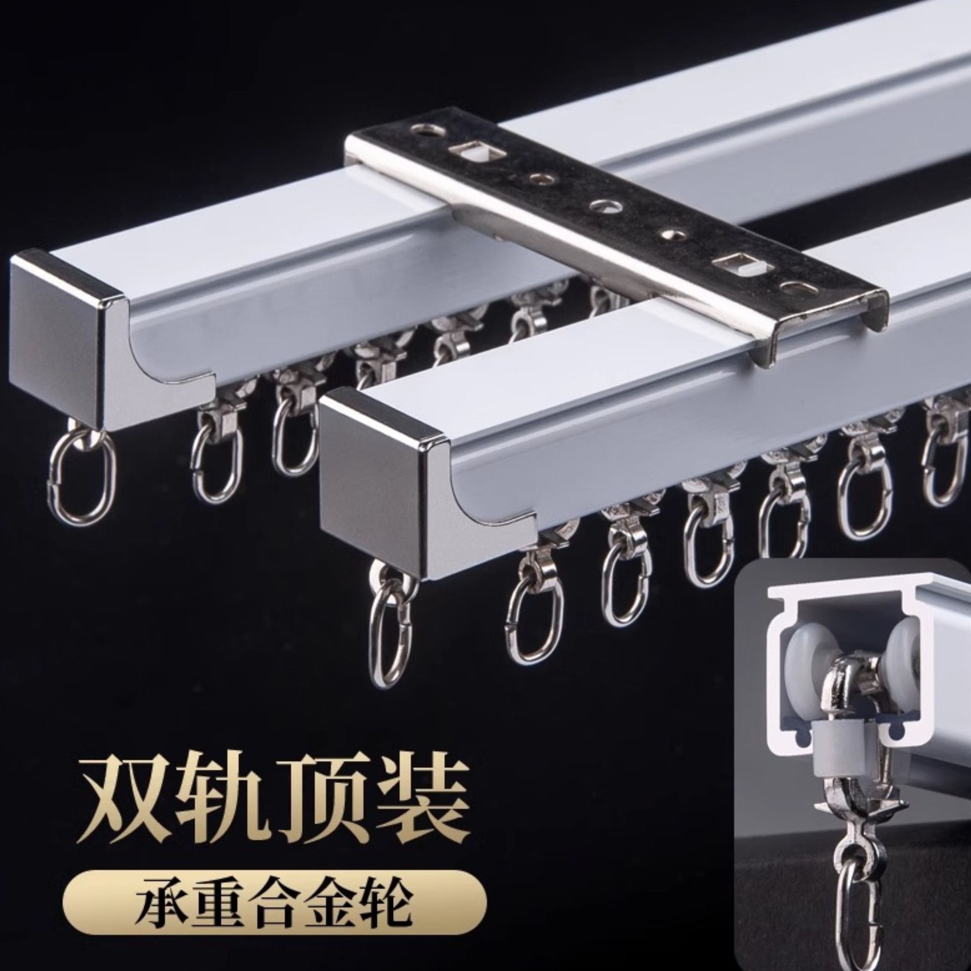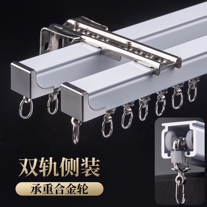 窗簾軌道加厚鋁合金靜音滑軌輪臥室客廳單雙層導軌滑道輪飄窗批發