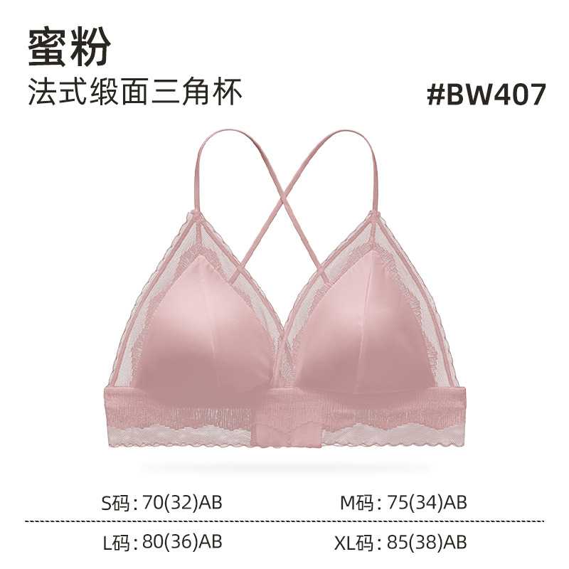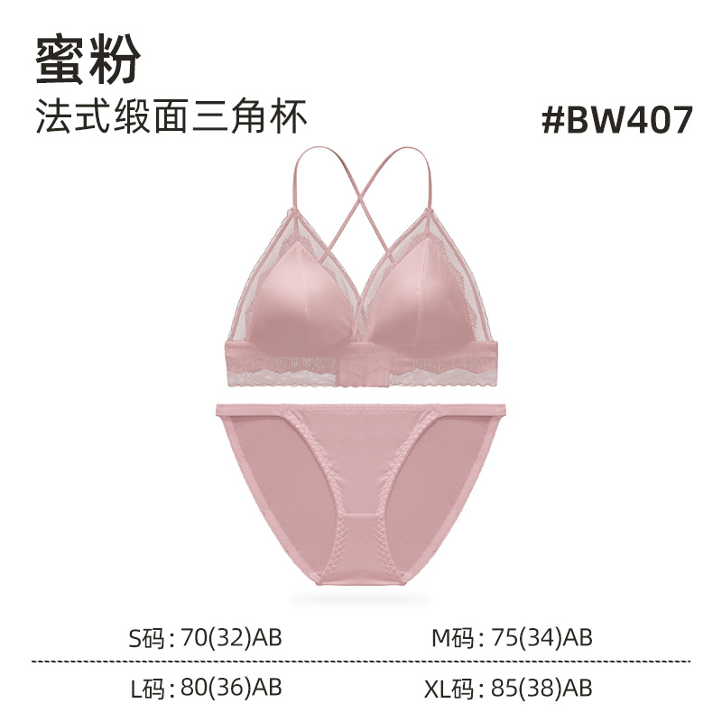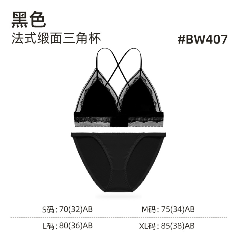 性感蕾絲內衣女法式緞面三角杯舒適聚攏美背內衣輕薄透氣文胸套裝