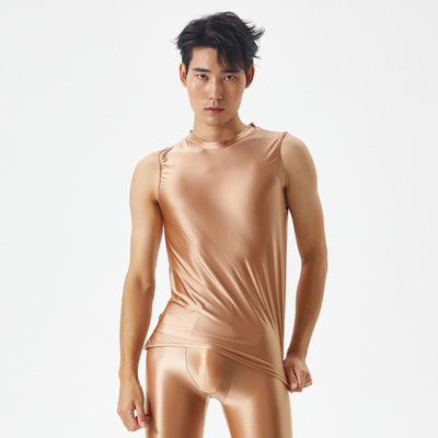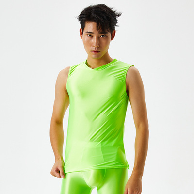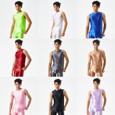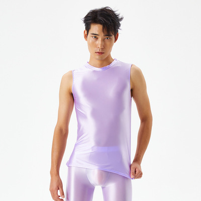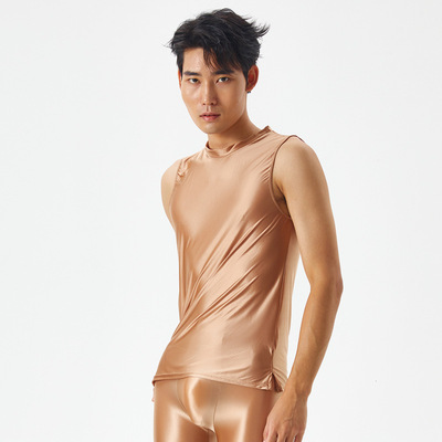 Slim-fit smooth and glossy men's exercise top with high elasticity, large size, sexy, European and American, cross-border 7075