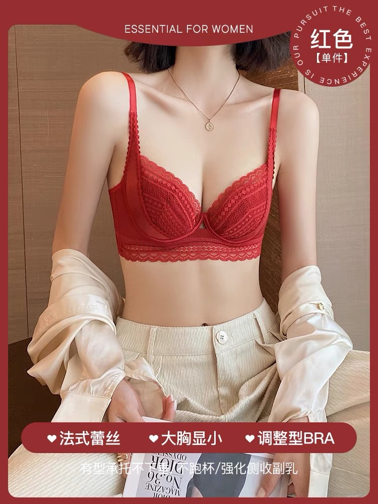 Cross-border French lace underwear for women with large breasts, small breasts, gathered and tied with side breasts, thin summer sexy bra 230856