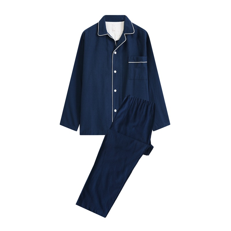 Printless Japanese-style fine cotton-woven flannel pajamas without side seams home clothes set for men and women in autumn and winter outdoor wear