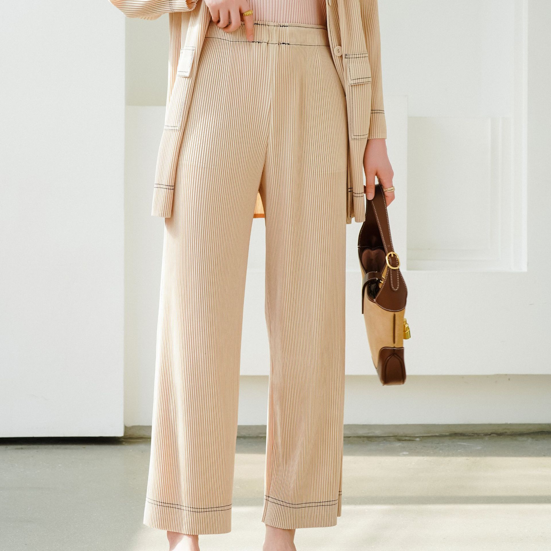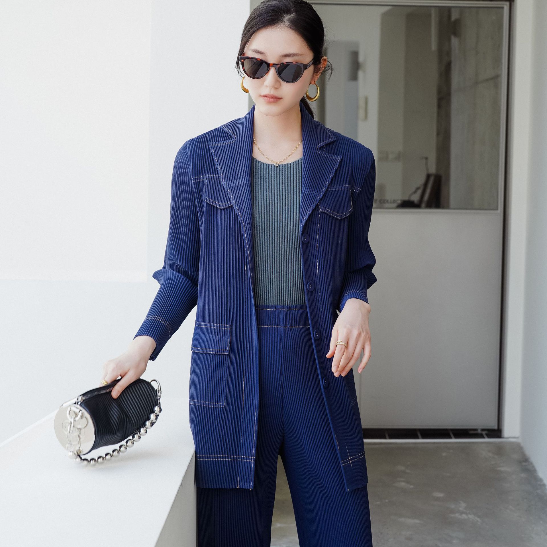 Quality 2025 Early Spring New Miyake Pleated Retro High-end Denim Style Commuter Suit Set