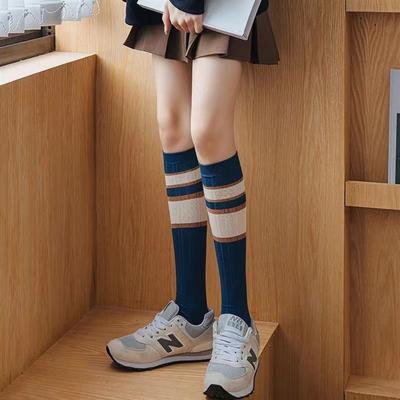 Blue leggins for girls, suitable for spring and autumn, thin, outerwear-style JK long socks, Japanese striped sweet school style, versatile and flattering