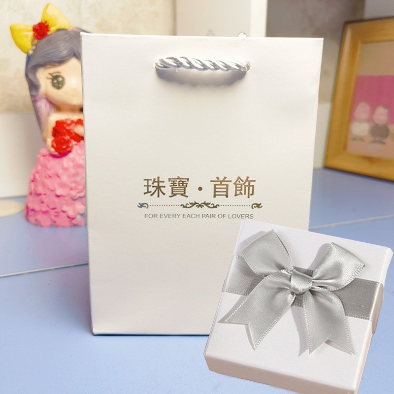 白色/灰絲帶 盒+手提袋