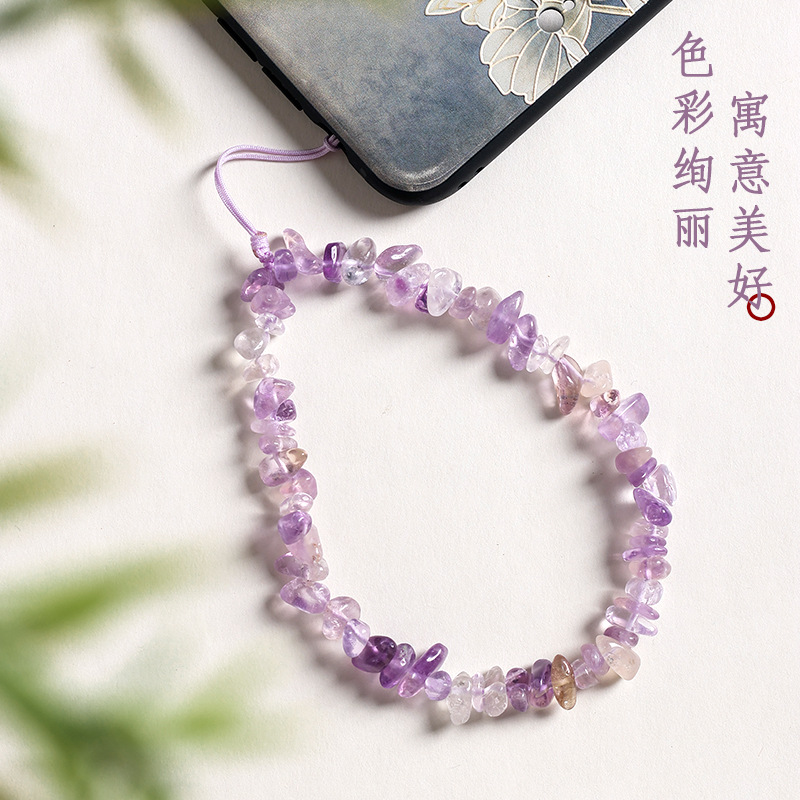 天然紫水晶黃水晶手機鏈掛件女款碎石精緻短款手機殼掛繩防丟掛飾