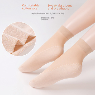 春夏棉底天鵝絨女短絲襪中筒襪吸汗防滑底防勾絲肉膚色鬆口按摩襪