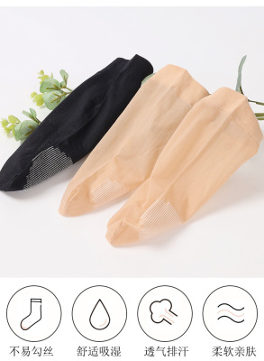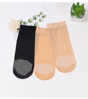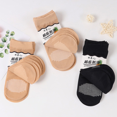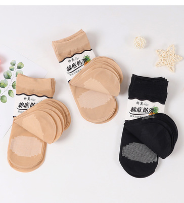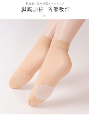 Sheer Stockings with Cotton Sole, Non-Slip Massage Socks for Women - Summer, Satin-Like Sheer, Breathable, Mid-Calf