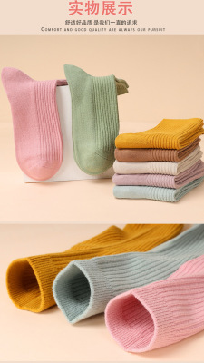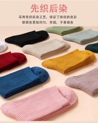 雙針襪子女純色中筒襪春季ins潮糖果色日系純棉襪豎條長襪堆堆襪