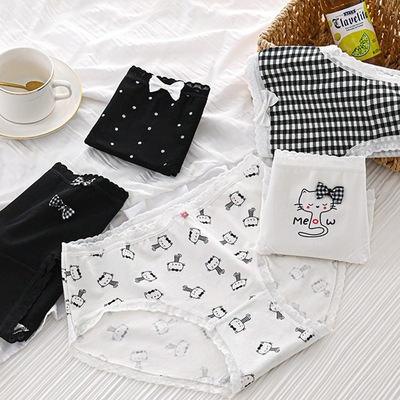 Underwear for women breathable middle school students girl thin sweet cartoon cute mid-waist buttocks comfortable new Japanese trousers