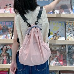 2024 summer new solid color Japanese Ruiying drawstring backpack commuting popular casual drawstring lightweight travel bag