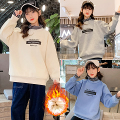 男女童冬裝加絨加厚外套2024大衛衣假兩件雙層羊羔毛保暖中大童潮