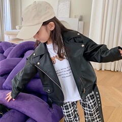 女童秋裝小香風彩色軟糯毛呢花邊外套+白色內搭+黑色喇叭褲分開拍