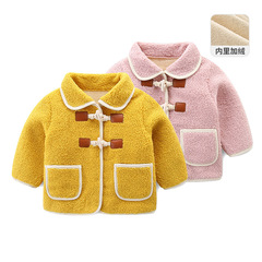 Idea Baby Girl Autumn/Winter 2023 New Fleece Lined Thickened Lambskin Wool Coat Children's Top 9262
