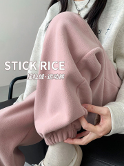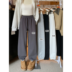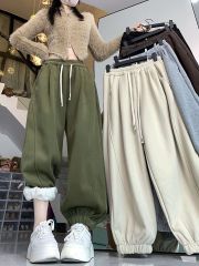 Actual shot! 2024 winter new style velvet thickened drawstring ankle sports casual pants for women