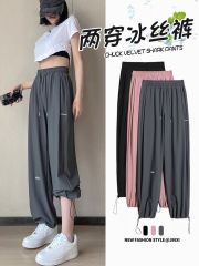 -Real shot of 65/35 fish scales new spring loose wide-leg tying casual pants for women