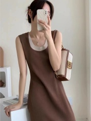 側開叉法式吊帶輕熟風初戀小裙子連衣裙2025新款夏季女針織無袖背