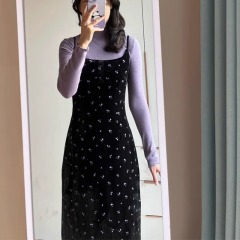 2024 new autumn sexy black long-sleeved dress for girls hot girl royal sister hip skirt