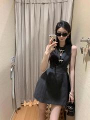 蝴蝶結鏤空無袖連衣裙子女收腰顯瘦氣質設計高級感小眾性感短裙夏