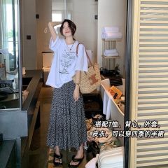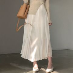 White pleated skirt and skirt for women in summer A-line skirt new high-waisted umbrella skirt mid-length skirt long skirt trendy
