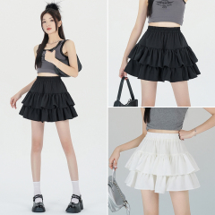 Actual shot of 2024 new summer style slim and versatile Korean style sweet a-line umbrella skirt ruffled fluffy cake skirt for women