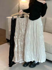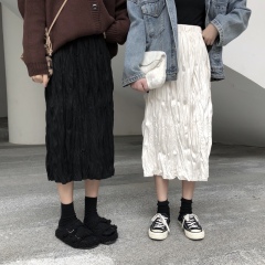 Loose and versatile pleated skirt, high waist hip skirt, long skirt, student skirt