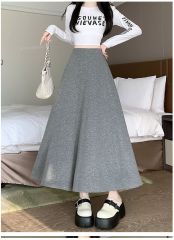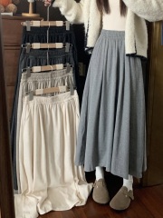 Photographed Autumn/Winter High-Waist Slimming Glutinous Rice Half-Skirt with Large Train Casual Relaxed Style Versatile Gray Half-Skirt